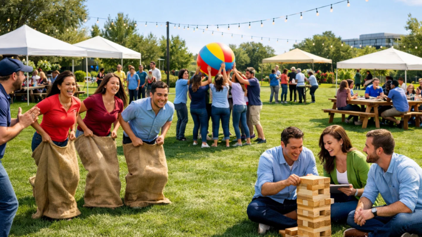 - Team Building Games: Obstacle courses, relay races, or trust-building games.