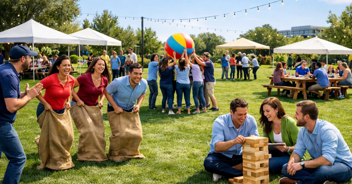 - Team Building Games: Obstacle courses, relay races, or trust-building games.